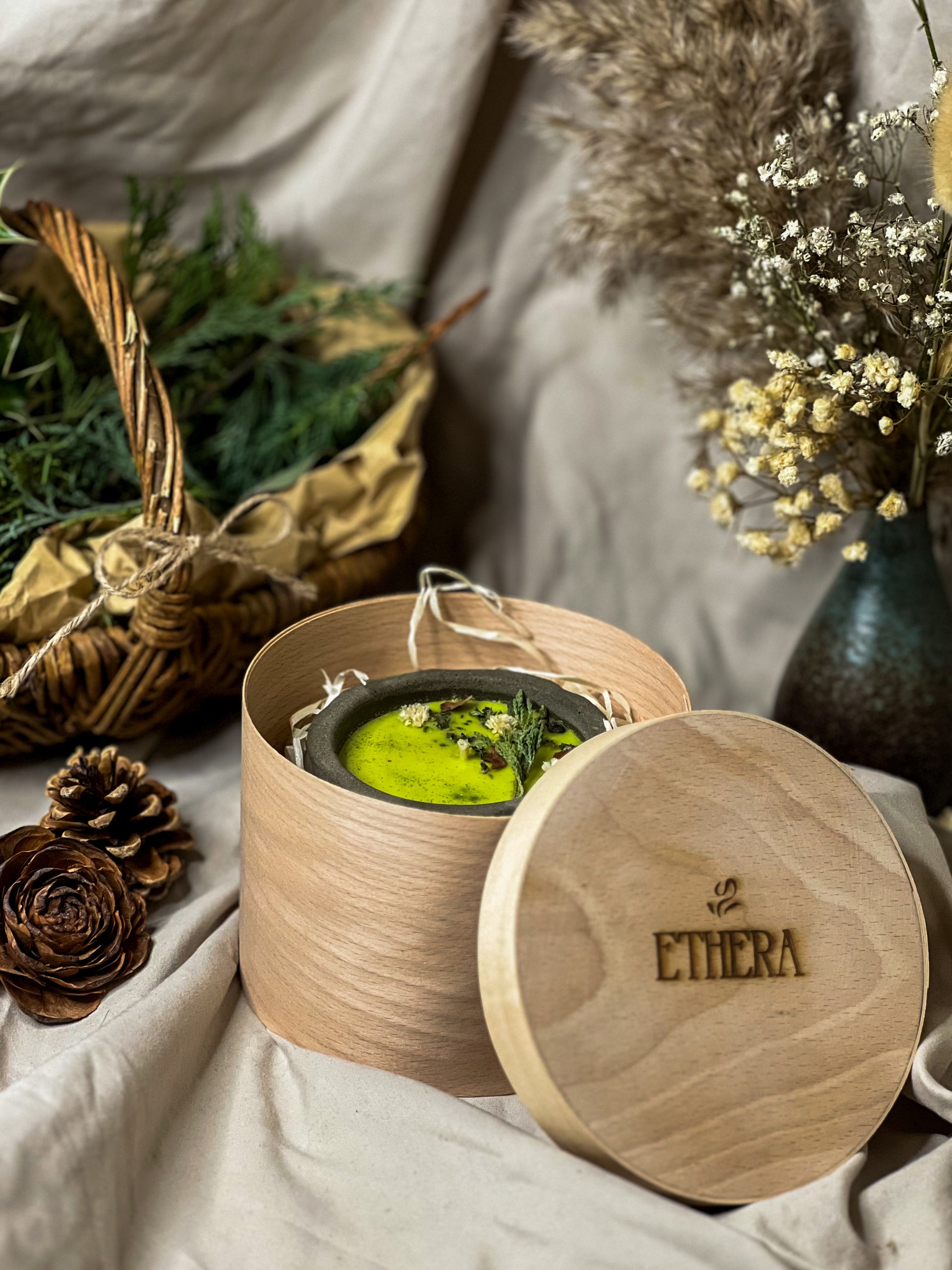 Step into the stillness of a winter forest. Our Sapin Givrée candle captures the crisp, refreshing scent of frosted pine needles – cool, resinous, and invigorating, like a breath of fresh alpine air.